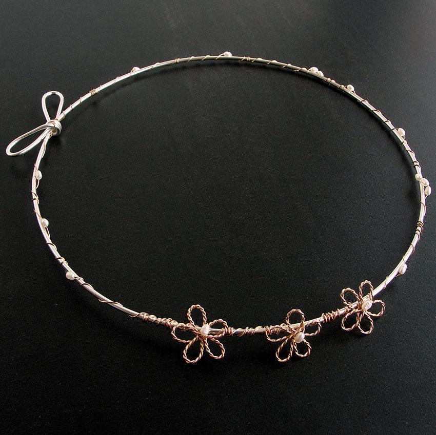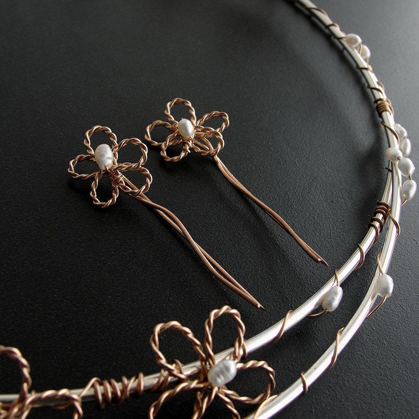 ✏ A romantic and charming design with pink gold-plated flowers and white pearls. It is our most fitting suggestion for every summer wedding.